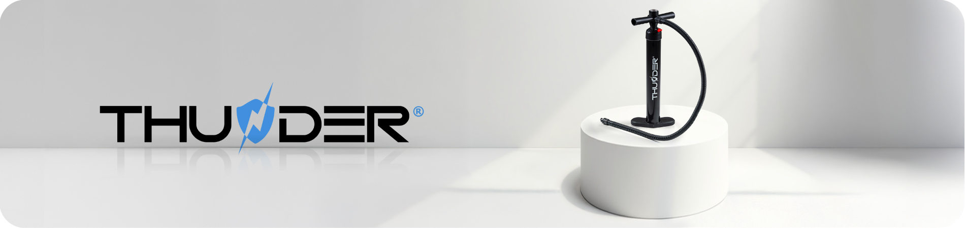 Nuestra bomba THUNDER®️ es duradero, robusto y fácil de usar. Proporciona la potencia de bombeo justa para inflar tu tabla de SUP de forma rápida y eficaz. Te permite preparar rápidamente tu tabla de SUP para remar en el agua y disfrutar de la actividad con total comodidad.