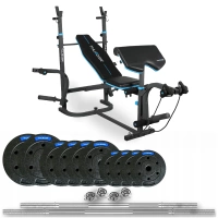 Set de musculación de 50 kg con barra de 220 cm y banco VIGOR-A marca THUNDER