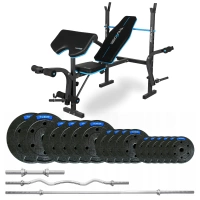 Set de musculación de 57,5 kg con banco VIGOR-A marca THUNDER y barra semi-curvada