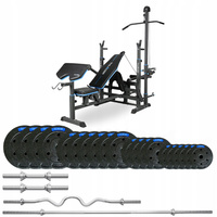 Set de musculación de 87,5 kg con banco VIGOR-A marca THUNDER y barra muy curvada